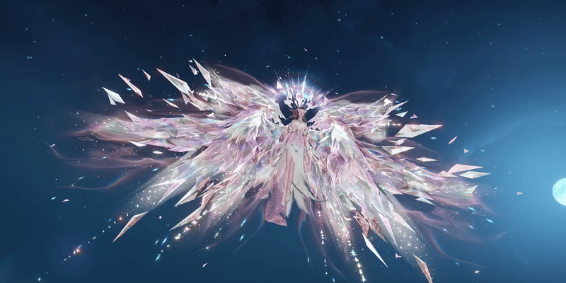 当凝聚星尘本源的羽翼划破夜空,万千星光便在你肩头流转,宛若来自群星谱写的永恒颂歌——每寸骨架都镶嵌着会呼吸的星辰,展翼时多层渐变蓝紫光效如星云坍缩,飞行时洒落的碎晶点点一如星河倾泻,风华流转且璀璨夺目!