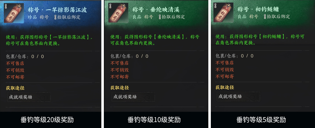 垂钓达到对应等级,还会给称号: