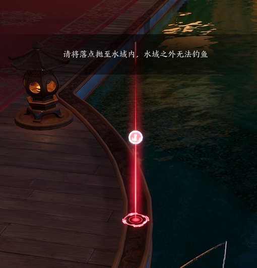 获得鱼竿鱼饵后,在游戏内有水的的地方都可以抛竿开始钓鱼,可以垂钓的地方鱼线是绿色,鱼群富集区域显示黄色,不能垂钓会显示红色且提醒换落点。