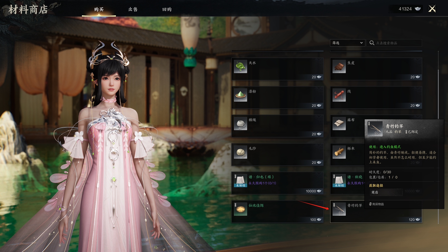 首先,你得有一根竹竿和鱼饵,都可以在地图上的杂货商买到。