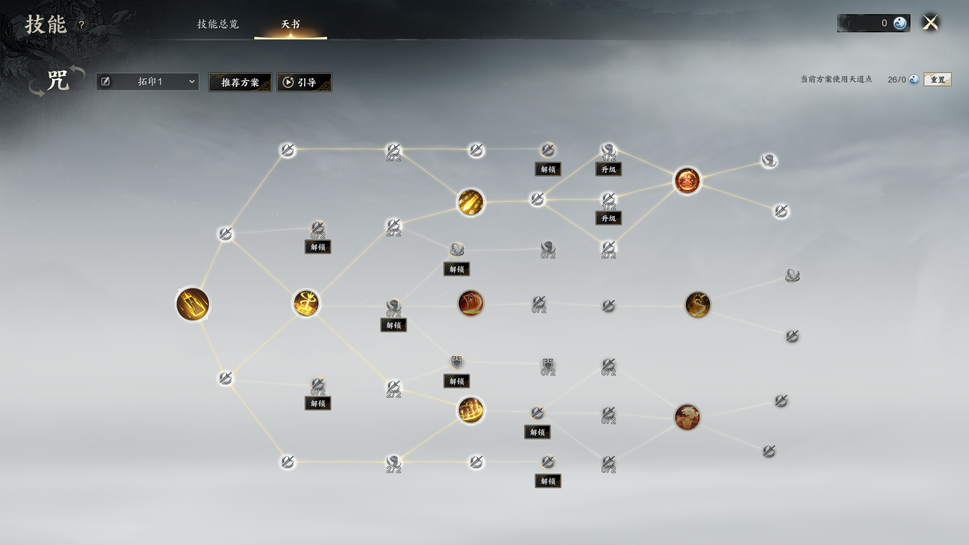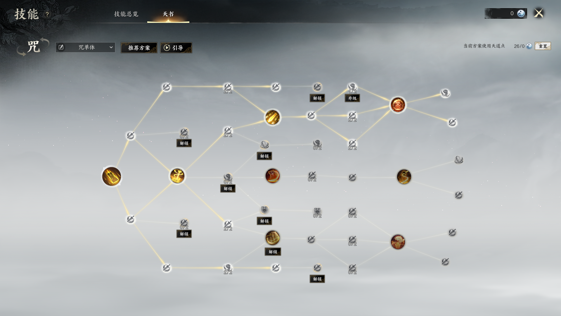 这一套是比较均衡的点法,可以用玄阳天律快速清灵昧和群怪AOE,也可以平A续律令的会心率加成BUFF,属于万金油的一套点法