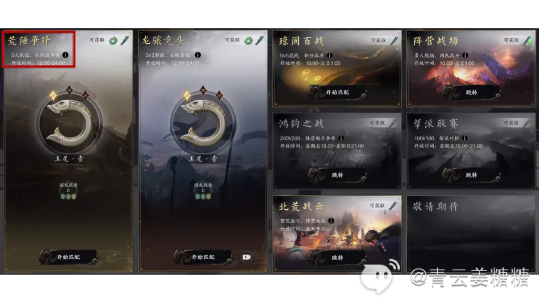 公测第二天,PVP活动通常已经开放。1V1荒陲争锋32级开启,5V5琼阁百战42级开启,