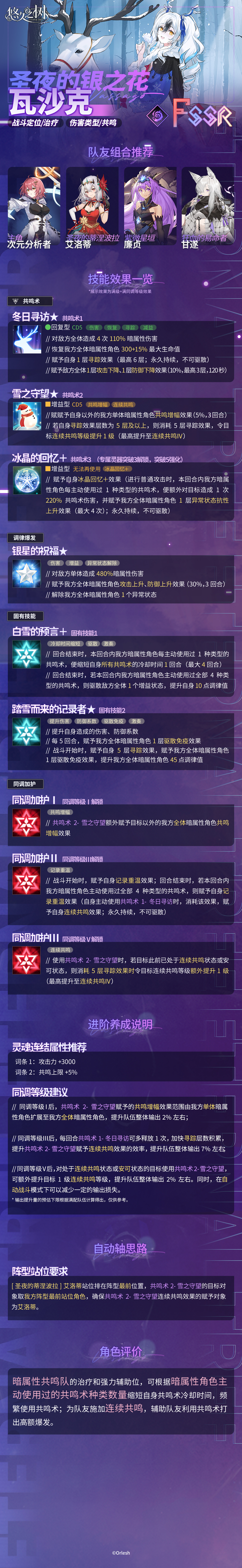 《悠久之树》全新暗属性FSSR角色「圣夜的银之花·瓦沙克」出战指南公开!了解技能、获取攻略,助你轻松上手。点击查看详情!