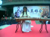 7月26日,周六的傍晚,一抹晚霞映照着央视外景基地的古建筑群,仿制东汉风情的铜雀台景区热闹非常,铜雀台上下武士林立,“少林、武当、峨嵋…….各大武林门派弟子”齐聚一堂!俨然是一部武侠大片的拍摄现场。其实这是金山中华武侠网络游戏大片――《剑侠情缘网络版》的发布会现场。大会按照古代武林豪侠聚会的形式设计,号称“剑侠英雄会”,上千嘉宾分列于“少林、武当、峨嵋、丐帮、唐门等帮派”之中。三十余名执剑武士进行大型剑阵表演,陈妃平、“彝人制造”主唱阿木现场演绎游戏音乐《剑侠情》、《大英雄》;而著名组合羽泉在古装武士的簇拥下登场,一曲游戏主题曲《这一生只为你》把现场气氛推到了高潮。