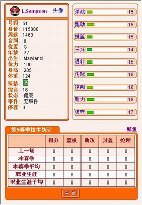 每轮(现实生活中的每天)的比赛,你可以设置球员进行一项技术的训练,也可以休息,休息对体力恢复有很好的作用。球员训练一般根据球员的位置进行训练,如中锋、大前锋训练力量,组织后卫训练传球等。当然,同时也要注意球员的综合能力的发展,使每个球员都在有较高的竞技水平的基础上又各具特点,以配合球队比赛战术的要求。以下4个方面是左右球员训练效果的最重要的因素: