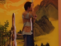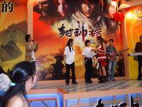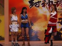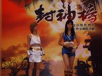 在《大英雄》雄浑乐曲的感召下,金山的展区里总能看到穿着奇装异服的其他展台cosplayMM,她们忙着和剑侠cosplay帅哥合影、忙着在游戏体验区里玩游戏、还有围着大转盘抽奖品的,有个特别的可爱的妹妹美眉拉着工作人员直问“《幻想春秋》什么时候能玩啊,造型好可爱哦,我特别想cos那个手拖莲花的小姑娘……”唧唧喳喳地问了又问,还调皮地摸起《 封神榜》异人cos的翅膀来。她们怎么如此空闲,不要表演吗?