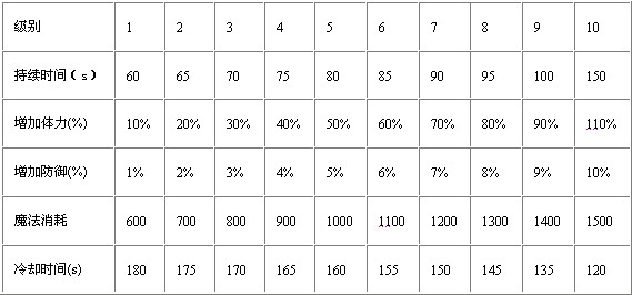 而这次Imazic公司的设计人员也吸取了暴雪的设计精华,设计出了超级强化技能。随着技能级别的提升,角色的体力和防御会在现在的基础上提高一定的百分比,见下表。