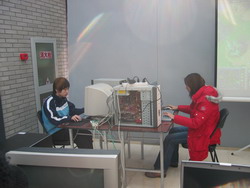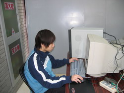 双方面对而坐,看起来还蛮正式的样子。不过,从双方都没带耳机可以看出,这不过是场胜负不重要的表演赛而已。不过,我们的Faith.cang MM可不轻松,看她严阵以待,是不是打算一鸣惊人?