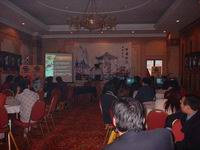 下午14:20分,会议正式开始。此时的会议室里已是人头攒动,大家都期待着见证国产网游大片《刀剑Online》揭开神秘的面纱的一刻。随着视频演示和FLASH动画的播放,大家的注意力都集中到了会场的大屏幕上。在工作人员的讲解下,《 刀剑online》诱人的特性被一一展示。业主们被游戏深邃的内涵,独特的游戏设定,极具魄力的格斗场面所深深吸引。