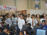 晚上6点当我们准备封起电脑,试玩区的MM一脸可怜的对我们说,能不能让她们再玩一会。就在电脑装箱的时候还有一个40岁的阿姨跑过来问我,有没有这个游戏的安装盘可以带走,他的儿子想在家里的电脑玩。好心的工作人员很努力的在现场为这个妈妈找到一盘游戏的客户段,并且极为耐心的告诉这个妈妈如何注册如何进入游戏。看着这位心满意足转身离开的妈妈,黑衣感叹到:“可怜*****啊。”在展台拆除的最后,依然有很多孩子的家长专门跑到展台询问是否还有天翼之链的周边可以买。