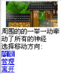 人物管理:包括使用物品、人物管理、交易物品、挂机修炼几项。使用物品可以使用恢复类物品来恢复自身体力与法力,使用攻击物品对怪物进行攻击;人物管理可以查看自身资料,如自身状态、级别、装备技能、拥有物品等;交易物品可以与其他玩家交易物品,以取得更好的装备等;事业挂机修炼,可以在具备必须的物品(人参、熊胆)后,进行自动挂机修炼,断网练级,150经验/30分钟。