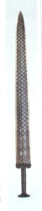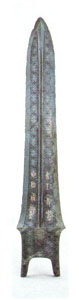 青铜剑 以青铜铸造而成,剑身与剑柄皆为青铜矿所制。
