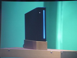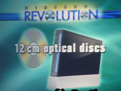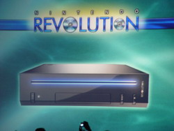 任天堂正式公布次世代主机Revolution的模型机与性能诸元,除了主机大小是目前任天堂所推出最小的机种(只有三个DVD盒迭起来的尺寸)以外,它还保证向下兼容,可以同时兼容新的12公分光盘与GC的小光盘片。