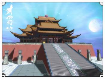 金顶四下,云海飞卷奔腾,仙风袅袅。金顶上,神殿俨然,庄严肃穆,尽显中国古代建筑之风尚。站在蜀山之巅,远望四野,越发显得天宇空旷,无际无涯。玩家进入接引殿,选择修真之路后,元神将被送到望月或大荒。