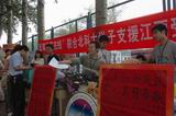 6月26日,在北京科技大学校园里,由“足球经理在线”提供支持的支援江西受灾地区捐助活动正在进行。这次捐助活动原定为江西受灾地区希望小学捐助学习用具及书本,考虑到灾区现状,将捐助活动范围扩大到为江西受灾地区群众捐助。