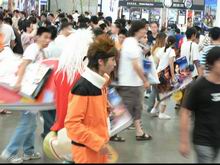 同样别吸引到丝路展台的可不止是天堂的MM,在临近COS区的各个社团coser们也被**展台火热的气氛所感染,趁着闲暇的空档,跑来为《丝路》助威,这不,《火影忍者》的鸣人和自来也就在拥挤的人群中观看台上的表演。而其他观众更不用说了,不断翻新花样的活动以及飞翔的“狼牙棒”都让场面红火非常,再加上帅哥美女们的助阵,要迷倒高贵的天堂精灵MM自然也不在话下。