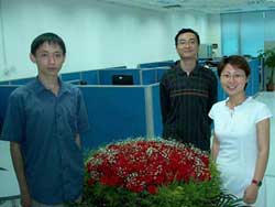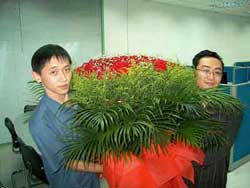 聊天完毕大家都起立准备道别,两位玩家突然告诉我们有一份特别的礼物要送给我们休闲、可爱、浪漫的《恋爱盒子OL》,我们正准备说:“谢谢”,他们已转身门向外走去,我们工作人员也一同跟去,走到公司大门外我们都惊呆了,眼前是一片花的海洋,再擦亮眼镜仔细看,哇!原来不是一般的鲜花,而是火红的玫瑰…..