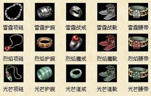 47级 随机获得雷霆战戒、雷霆护腕、雷霆项链、雷霆腰带、雷霆战靴 、光芒道戒、光芒护腕、光芒项链、光芒道靴、光芒腰带、烈焰腰带、 烈焰护腕、烈焰项链、烈焰魔靴、烈焰魔戒中的一件。