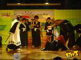 他们的最佳创意就是把街机游戏上的打斗给现场表演出来了。不但有血槽,还有打斗的时候发出的飞行道具、超杀等都表现了出来。
