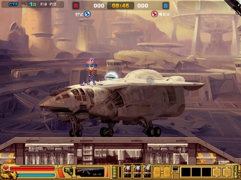 《Gunster》是在2D场景的地图上利用跳跃或飞行器在空中进行对战。游戏采用FPS的操作方法和新颖的游戏场景。