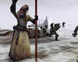这一次展示的《冬袭》是已经可以操作的试玩版,玩家可以体验新的剧本以及一些游戏的新要素,游戏中的动作配合以丰富的情节场景给人留下了深刻的印象。游戏即时渲染部分和各种预定的情节场景都衔接得天衣无缝。当游戏从实施演算转入动画场景的时候会出现上下的界面,而动画场景结束的时候镜头会瞬间转向天空,然后上下界面褪去。这在3D RTS之中是很常见的手法,而且在这里使用和整个游戏的氛围也配合得恰到好处。 在《冬袭》之中最大的特征,就是每个种族都会有"超级单位"登场。在《魔兽争霸3》发售之后,其他很多的RTS都采用了"英雄单位"这种东西,而"超级单位"这种东西却基本没什么人听过。不过说起来,论到更加表现出游戏本身的特点,采取一些有魄力以及比较大的单位来吸引玩家,超级单位确实是不二的选择。