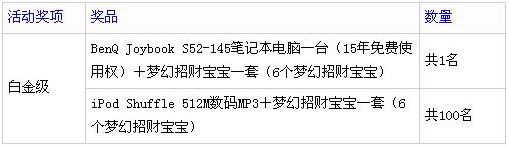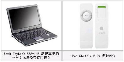 白金级大奖一名:BenQ Joybook S52-145笔记本电脑,在2006年1月31日活动全部结束后抽取。