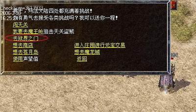 更新之后将开启盟重老兵连接狱界之门的通道,每个星期天晚上19点-20点凭“六种狱界印符”开启狱界之门,开启时会出现强大的怪物“狱界魔影”。狱界之门同时开启三处,狱界魔影化为三个分身通过狱界之门,到达玛法大陆的三个分身中有一个主身,带有大量狱界的宝物。一组印符只能进入一个狱界之门,能否到达主身就看您的选择了。