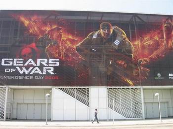 由于E3会场现在还没有正式对外开放,因此我们无法获得太多会场内部的照片及信息,但会场四周的众多大幅海报和广告就算不进入会场也依然清晰可见。特别是索尼打出的印有巨大标语“Play Beyond”的PS3巨幅宣传海报,就算你想不看见恐怕都难。事实上,在整个E3西部会场大厅的入口处几乎都被索尼的广告和海报所占据,可以说几乎每一个角落都没有被索尼放过。