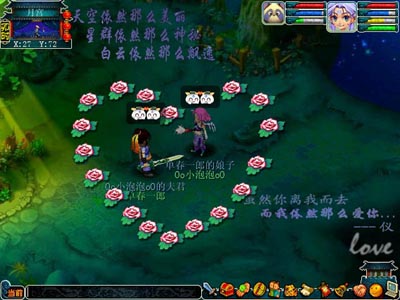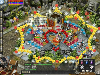 为了迎合虚拟感情的存在,目前几乎所有的网络游戏都开通了结婚系统,从最早的《传奇》中简单纯朴的婚礼,再到《大话西游》里中国古典繁琐的婚礼过程都应有尽有。于是,虚拟感情便可以在网络中开了花结了果,有了一个归宿和依靠。