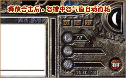 英雄合击的触发在于集天时地利人和为一身的瞬间力量的爆发,是主人和英雄的完美结合。而释放合击之后、怒槽会自动消耗怒槽中怒气值,因此需要通过将一些特定的草药直接拖入“火龙之心”中进行补满。