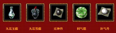 “火龙神品”分为“九花玉露”“九花雪露”“元神丹”“回气糕”“补气丹”五种,具体信息可以在各地的药师处获得。“补气丹”可在元宝锻造领取12颗以上金刚石的时候额外获得。