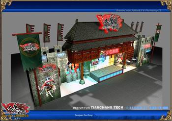 天畅科技在本次CHINAJOY上力推的游戏《大唐风云》目前正在火爆公测阶段。为配合游戏隋唐时期的历史背景,展台设计也是古色古香,独具匠心。展台仿造古代城墙建筑,中间是城楼高耸,两边是战旗飘扬,气势宏伟,凸现了隋唐时期的建筑特点。展区内还将不间断地播放《大唐风云》的游戏背景音乐,轻快悠扬的古典乐曲可以使玩家片刻远离喧嚣,瞬间梦回唐朝。天畅公司还准备了大量的游戏周边产品作为礼物在现场发放,以回馈所有支持《大唐风云》的新老玩家。