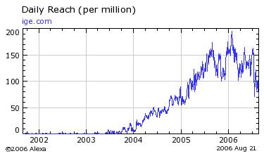 近几个月以来,由于封号严重,美服魔兽各服务器货币价格水涨船高,比以往高出了六至七倍。售价高了,收货价格随之增长,既而公司收货成本大幅增加、进货风险增大等问题实在让虚拟交易商们苦不堪言,甚至连著名的网游虚拟货币交易商IGE(Internet Gaming Entertainment)也因此陷入了前所未有的财政危机。目前已有很多虚拟货币供应商愤怒的抗议该公司七月下旬至今一直未按协定支付货款,少则三、四千元,多的甚至达到了数万元。笔者从世界最权威的网站排名统计平台http://www.alexa.com/获悉,IGE的网站访问统计数据从06年初的每百万访问量196猛跌到目前的80左右;世界排名也由从前的8000多名跌到了15,885名。两项重要数据均在短时间内狠跌了一半。为了解更多情况,笔者曾试图多次访问其销售网站,但奇怪的是多次都出现了无法访问的现象,想必这个虚拟交易行业的龙头老大的确遇到了不小的麻烦。
