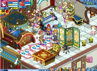在《水浒Q传》中用户不在是独门独户的生活,而是居住在小区中,通过任务可以随时和邻居们发生互动。允许自由的参观别人的房屋,既可以炫耀自己,又可以参照追求别人,促进游戏中的交流。小区中行走的用户可以看到其他人屋顶的各种气泡,标明了屋中用户的行为,引发交流互动的兴趣。家具总量超过梦幻:首先从家具类型分类上就形成4 种风格,古典型、现代型、卡通型、搞怪型不同外观的家具,数量众多,用户的追求也就越多,而且有更多的选择布置一个个性化的家园。