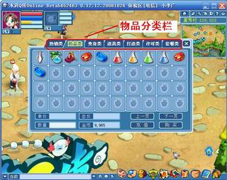 游戏玩家可以在游戏画面右下角点击相应图标进入“***”系统,点击按钮弹出“***”窗口界面将显示“***”物品分类,进而点击不同的物品分类查看该类物品列表选择所需物品。目前,“***”共设药品类、变身类、道具类、打造类、许可类、套餐类等八大类物品。首批上架的物品覆盖了打造类、道具类、药品类三个类别,共32种道具物品。其他的众多种类道具将陆续推出。