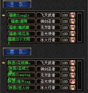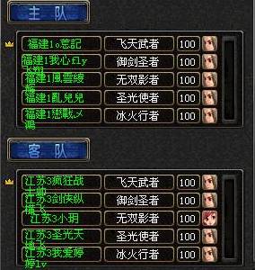 福建1暗 畮家族全队火枪手型像闪亮上阵,召出神宠,圣光使者和冰火行者各一水兽,队伍恰似强大!暗 畮家族采取防守战,无双影者放好地雷陷阱,欲意进攻,江苏3的无双影者和御剑圣者直冲上来,踩中陷阱,江苏3的无双影者因此被杀掉,双方的圣光使者也相续被杀,福建1暗 畮的飞天武者杀死对方的冰火行者后,江苏3北武皇族的御剑圣者抛之飞天武者逃离,福建1暗 畮的飞天武者和御剑圣者一起夹攻杀掉江苏3北武皇族的飞天武者,最后江苏3北武皇族的御剑圣者被对方四人合力杀死,败给了福建1暗 畮家族!