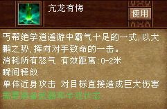 降龙十八掌之亢龙有悔——丐帮绝学逍遥游中霸气十足的一式,以大鹏之势,挥向对手致命一击。单体攻击对目标造成巨大伤害。