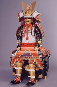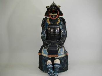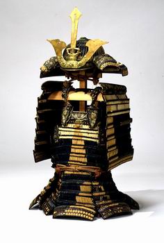 兜是日本战国时期极具特点的头盔的称谓。武将们为标新立异、更主要的是给敌人以威吓的作用,常常将兜的前立制成各种形状,煞是威风。 大铠是日本战国早期的防具,防御能力较强。但重量不轻,防碍行动。