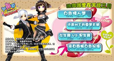 3月5日——3月21日,“《劲舞团》爱在天使三月”系列浪漫活动,让你的三月温暖明媚,爱情种子生根发芽,情人永远心心相印!