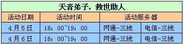 活动时间、服务器: