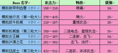 热血内侧新增单开场景―虚拟训练场,带给玩家的不仅是强烈的视觉冲激,还有极高的掉宝率、经验值和海量金钱。让玩家在畅快打怪同时,收获至宝、经验和金钱。下面就让我们来了解一下“虚拟训练场”中出现的BOSS吧: