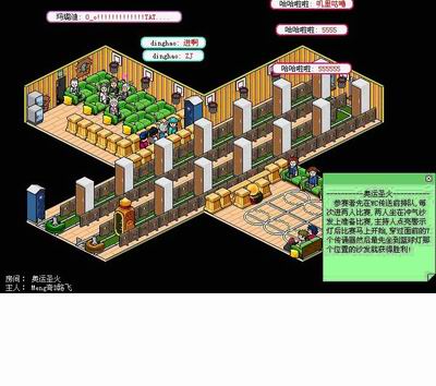 2008年奥运会即将到来,也是在北京的一次全球性的体育盛会。作为当今世界上规模最大和最有影响的综合性运动会,而奥运会也已经成为具有巨大吸引力的一项全球性体育盛会。其中,在奥运会开幕前的奥运圣火的传递,也是一件激动人心的事情!现在,一些富有创造性思维的哈宝,已经创作出一款相当有意思的动作类休闲小游戏——奥运圣火。在游戏场地,只有很简单的衣柜传送器作为游戏过程中的障碍,当然,要传递圣火,当然要克服中途的困难险阻咯!它的游戏规则也并不复杂,主要是由两名参赛选手进行对决,比试谁的传递圣火的速度更快一些。参赛者首先坐在充气垫子之上准备比赛,当主持人点亮他面前的警示灯以后,参赛选手即可马上行动,穿越面前的七个传送器,然后,最先坐到篮球灯前位置的沙发,即便宣告胜利!奥运圣火,也便传递成功了。
