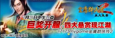 倒数两天!!7月26日下午14:00,MyGame《金庸群侠传2》巨奖开服!开服活动精彩亮相,装备等级冲级赛,样样不落!只要17173帐户就可以直接登陆永久免费的金庸传奇世界哦!