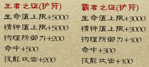 当王者之证与霸者之证的出现,让人们在服务器中的唯一和唯九的争论立刻拥有了答案!王者之证和霸者之证,是新《魔界》中财富和实力的体现,他们强横的属性更是让人疯狂不已。作为一个超极品的护符,王者之证和霸者之证不需要任何花费,完全是作为充值赠品发放给玩家的。新《魔界》每月的充值冠军都能够得到的荣耀象征!