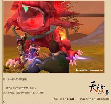 时光如梭,10月黄金周似乎在转眼之间过去。在黄金周期间的《BOSS截图大比拼》活动之中,我们的天机玩家投入了极大的热情,在10月6日那天我们对截图活动做过一次小盘点,精选了一些比较有创意的作品放出,获得了极大反响,如欲查看该新闻,可点击以下地址: