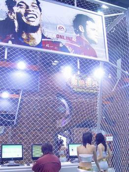 由第九城市在中国独家运营的《EA SPORTS FIFA Online 2》,在本次网博会上搭建了一个拥有绿茵场外观的试玩体验区。精彩的游戏视频、青春的游戏音乐,以及作为《FIFA》经典系列的网络版大作的推出,使《EA SPORTS FIFA Online 2》试玩体验区受到了众多游戏玩家的青睐。