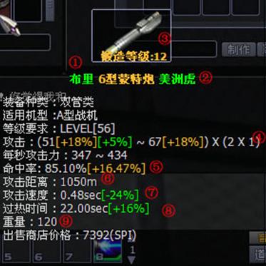 ⑥攻击距离:使用重型武器射程卡,每锻造一次增加3%的射程