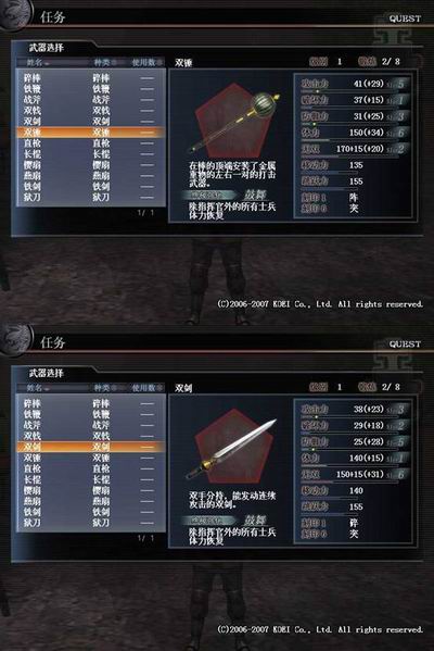 如同前文所说在三国的战斗中,所有士兵都是战场上重要的组成部分。而手持双手兵器的将军也是始终习惯身处于自己的士兵身边与他们共同奋勇杀敌。所以如果你使用的是双锤和双剑的话,你会发现在快速的战斗过程中,你还需要对自己的士兵进行一定的保护,所以究级强化后你将恢复所有士兵体力——爱兵如子,将才!