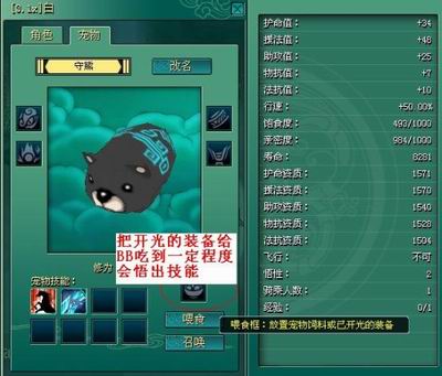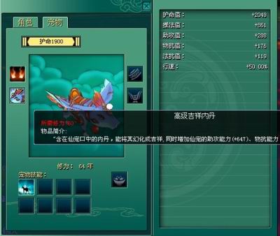 当宠物到了60级后,给宠物装上内丹,宠物会幻化,而且会加更多属性。