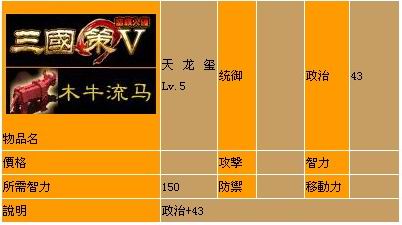 苍天破: 携带苍天破的武将,携带刀兵和枪兵时(本宝物只针对刀兵和枪兵有效)攻击城池的能力增加5%(备注,刀兵由于本身有兵种攻城加成,携带苍天破则攻城能力因此增加10%)